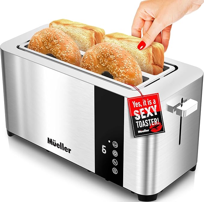 Four slices toast quickly.Extra wide slots excel.